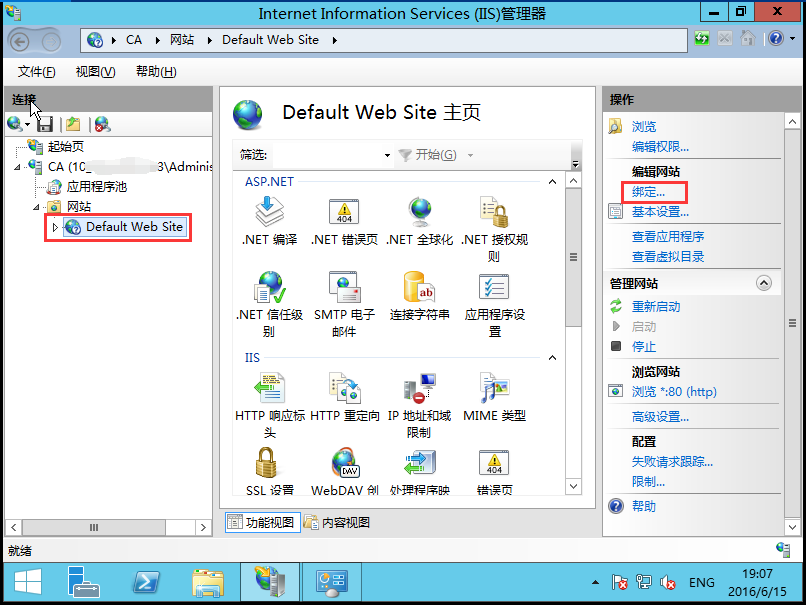 添加网站绑定内容:选择类型为https,端口443和指定对应的SSL证书