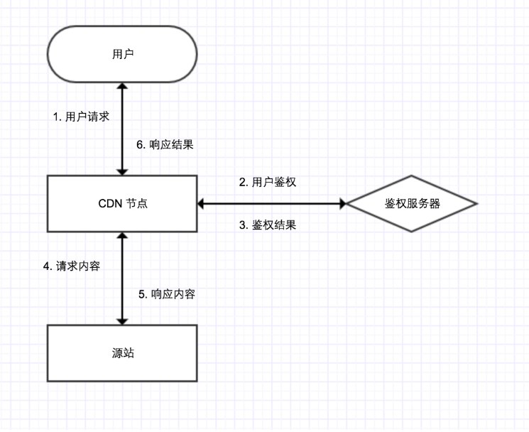 - CDN 节点将用户请求原封不动的转发给鉴权服务器;