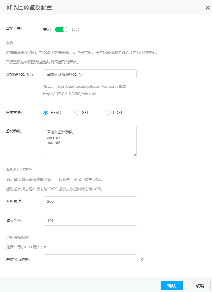 - 如果用户鉴权服务不是通过 URL 参数鉴权,而是通过请求头信息中的某些字段,上面的鉴权参数可以不用设置
