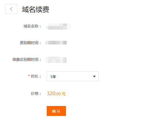 续费,在域名列表中找到需要续费的域名,点击续费(或在管理域名的付费信息中点击产品续费) -> 选择续费时长