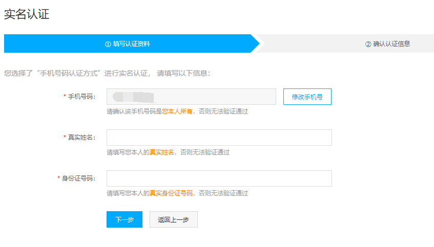 - 本平台目前只支持进行个人实名认证,不支持进行企业实名认证