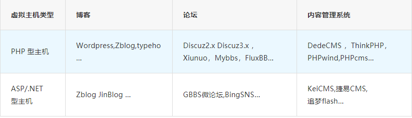 常见问题 > 虚拟主机产品支持的建站系统