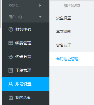 1.登录用户中心,点击“账号管理”—“常用地址管理”;