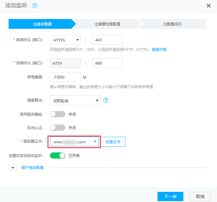 当您需要使用HTTPS的负载均衡服务时,需要使用到证书。证书分为服务器证书和CA证书,HTTPS单向认证用到服务器证书,只对服务提供者进行验证;HTTPS双向认证用到CA证书,对服务提供者和客户进行双向验证。服务器证书适用于绝大多数情况。 创建服务器证书1.登陆管理控制台,选择“负载均衡” —> “证书管理” —> “创建证书” ![]() ![]() 2.按照要求贴入相应的证书和私钥,点击“确定”完成创建 查看样表: ![]() 粘贴证书内容: ![]() 注意: 负载均衡只支持PEM格式的证书。 如果对格式有疑问时,可以点击“导入样表”,查看格式,但样表不能导入。 .cer 和.crt等证书实际上就是PEM格式的证书,只需用编辑器打开证书,复制内容即可。 3.提交,创建完成! ![]() 创建CA证书1.登陆管理控制台,选择“负载均衡” —> “证书管理” —> “创建证书” ![]() 2.导入证书内容,添加成功! ![]() 配置服务器证书注意: HTTPS的解密和认证在负载均衡上完成。后端云服务器只响应HTTP请求,从而提高后端云服务器的效率和便利性。 1.添加HTTPS监听(默认前提已经添加了后端服务器) ![]() ![]() 2.访问负载均衡(这里的证书是自制的,所以显示不可信,可信证书可到其他可信机构购买) ![]() |