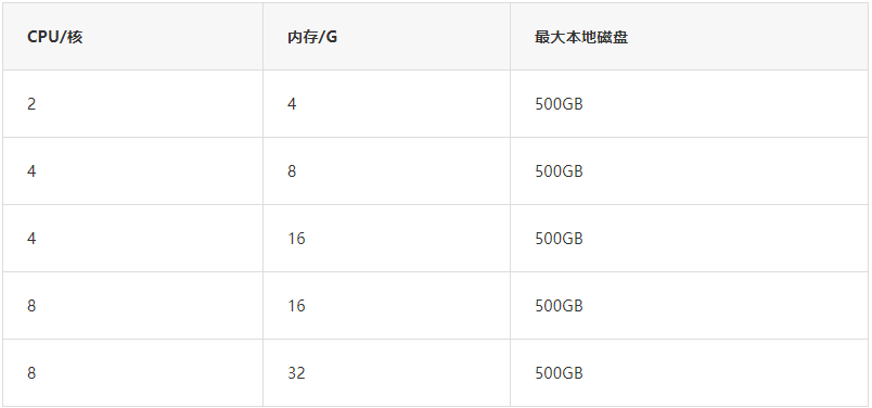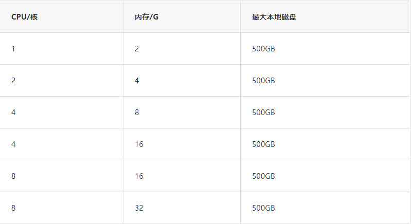 单机基础版支持的实例规格,详情如下: