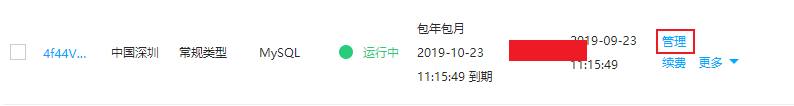 创建云数据库实例后,您需要设置实例的白名单,以允许外部设备访问该云数据库实例。 操作步骤: 1.登录控制台->云数据库->管理云数据库实例。 ![]() 2. 找到需要设置白名单的目标实例,单击管理