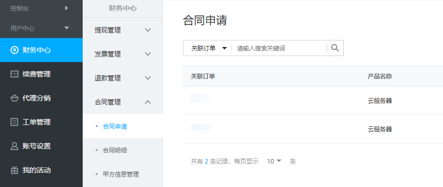 平台支持自助申请合同,其中云服务器新购、升级、续费订单及云虚拟主机新购、升级、续费订单支持自助申请合同,其他产品消费暂不支持申请合同,如需申请请提交工单合同类工单联系客服处理。