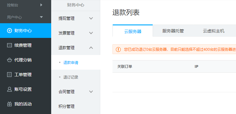 退款步骤1、进入”控制台”-“财务中心”-“退款管理”;