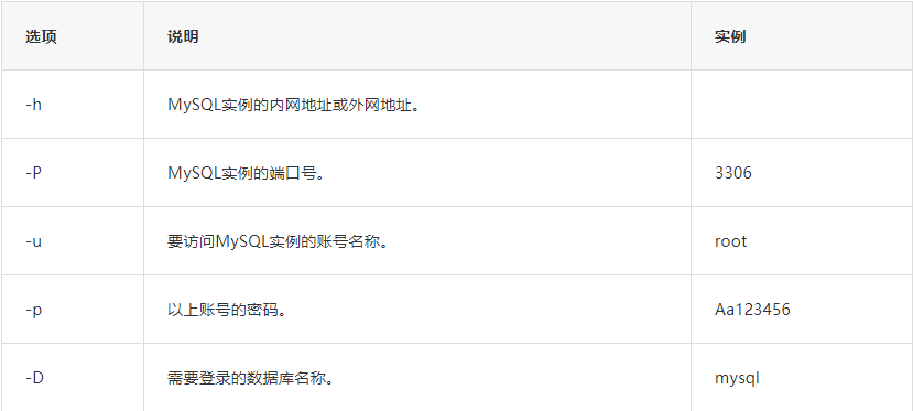 ![]() ![]() 4.单击打开 ![]() 若连接信息无误,即会成功连接实例。 使用命令行连接实例如果您的服务器安装了MySQL,可以通过命令行连接云数据库实例,连接方式如下: ![]() |