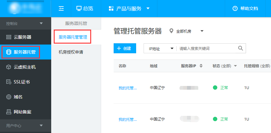 登录,控制台->服务器托管管理。