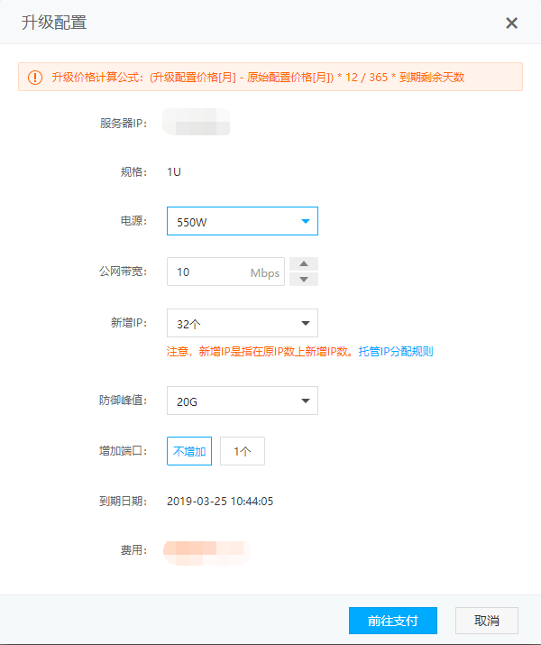 选择升级配置,生成升级订单。
